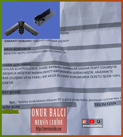 Sorunun devam etmesi üzerine cihaz Karacasulu Teknik Servis’e gönderildi. Yapılan inceleme sonucunda gimbal bölümünde düşmeye bağlı mekanik sıkışma olduğu tespit edildi. Bu durum normal şartlarda garanti kapsamı dışında değerlendiriliyor. Ancak servis, kullanıcı memnuniyeti adına bir defaya mahsus cihazı ücretsiz olarak tamir etti ve çalışır halde teslim etti.