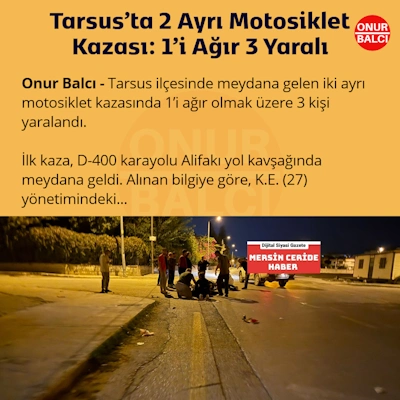 Tarsus’ta 2 Ayrı Motosiklet Kazası: 1’i Ağır 3 Yaralı